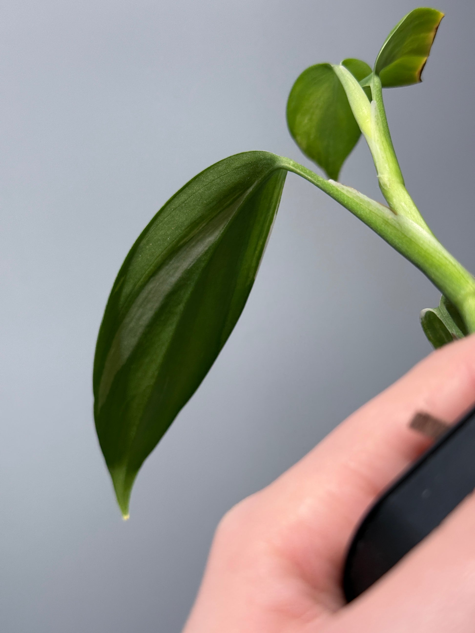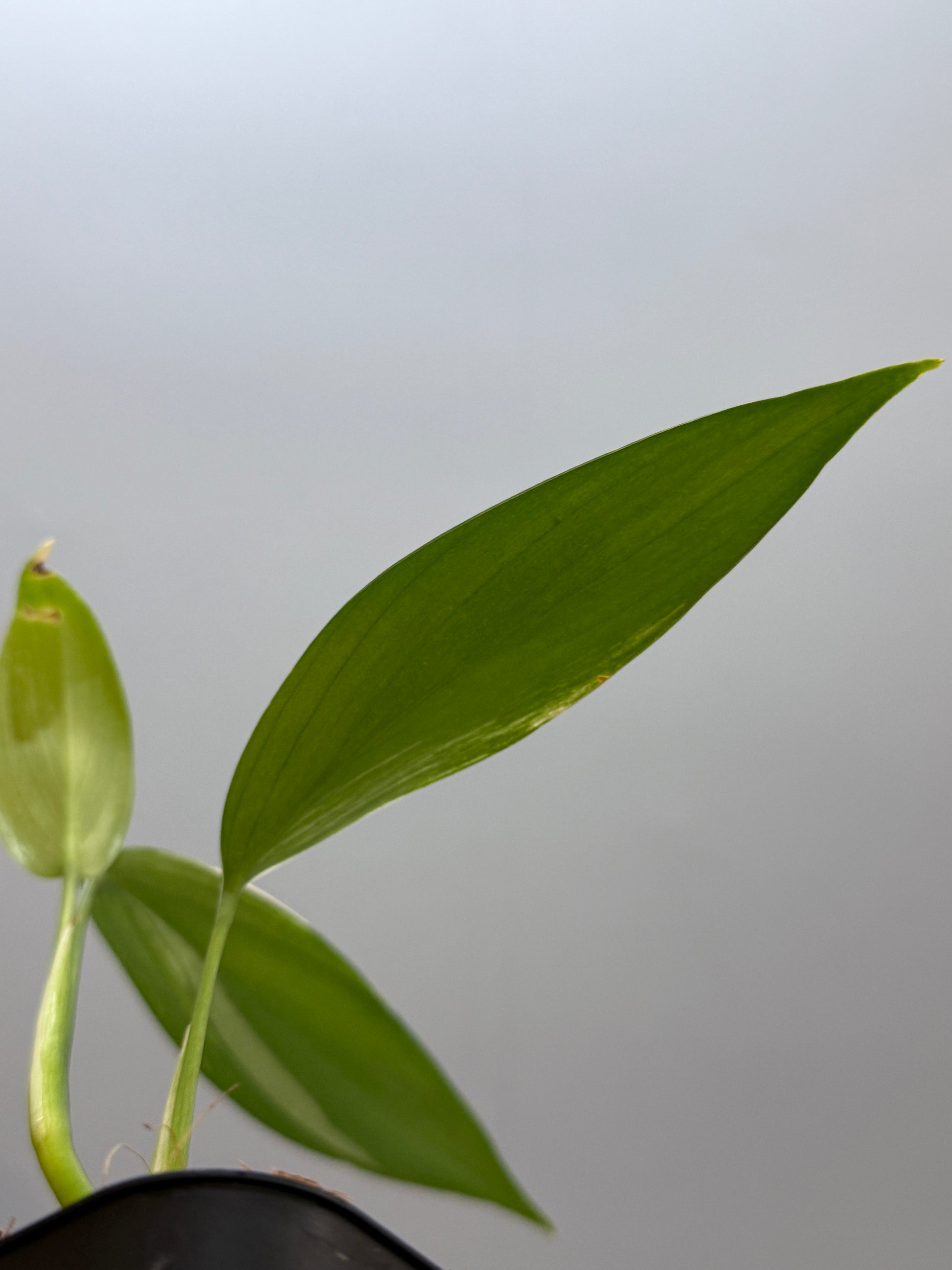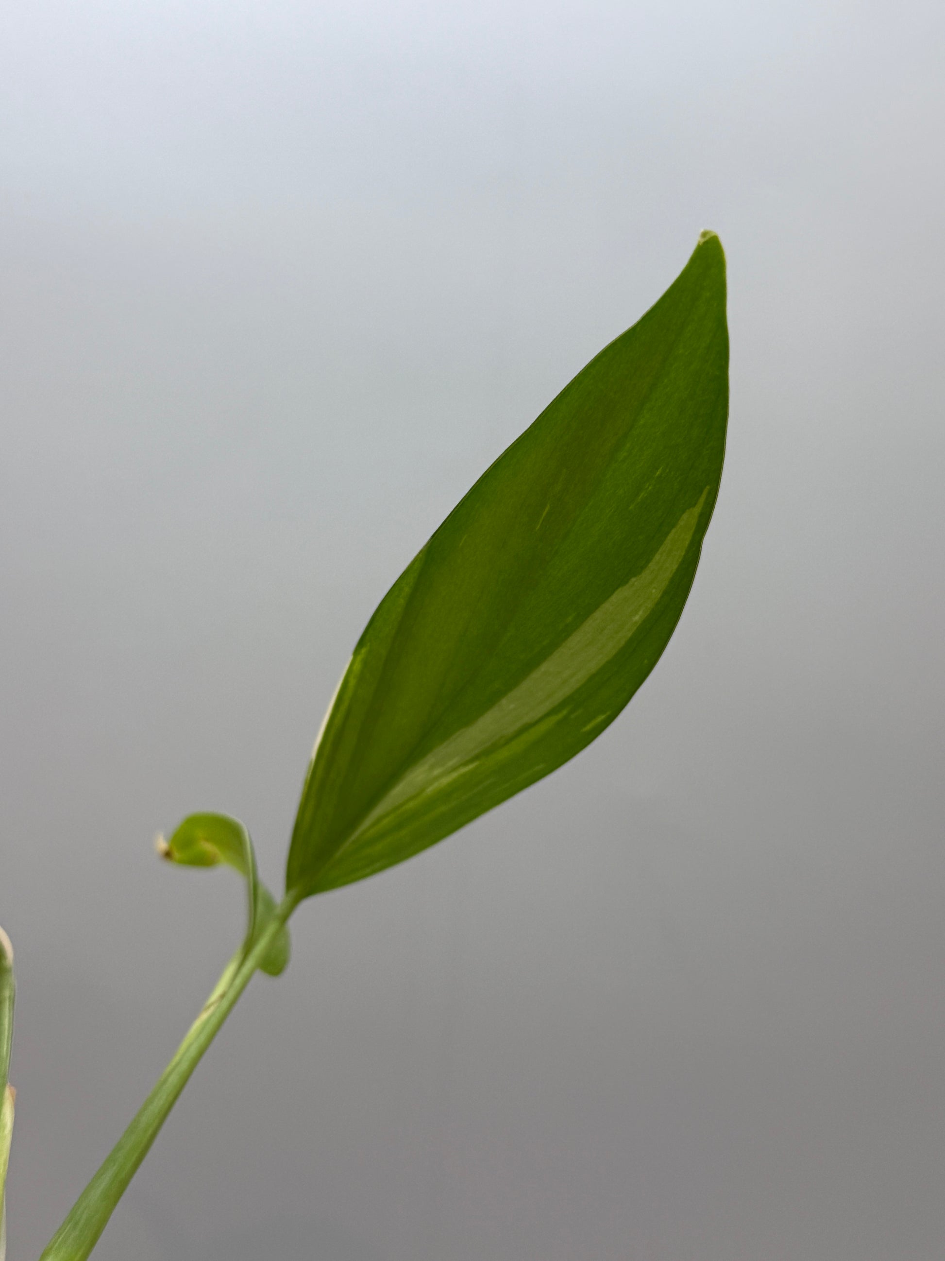 スキンダプサスの中では珍しい、肉厚で細長い葉を持つ「コリアセウス」の白斑タイプ。